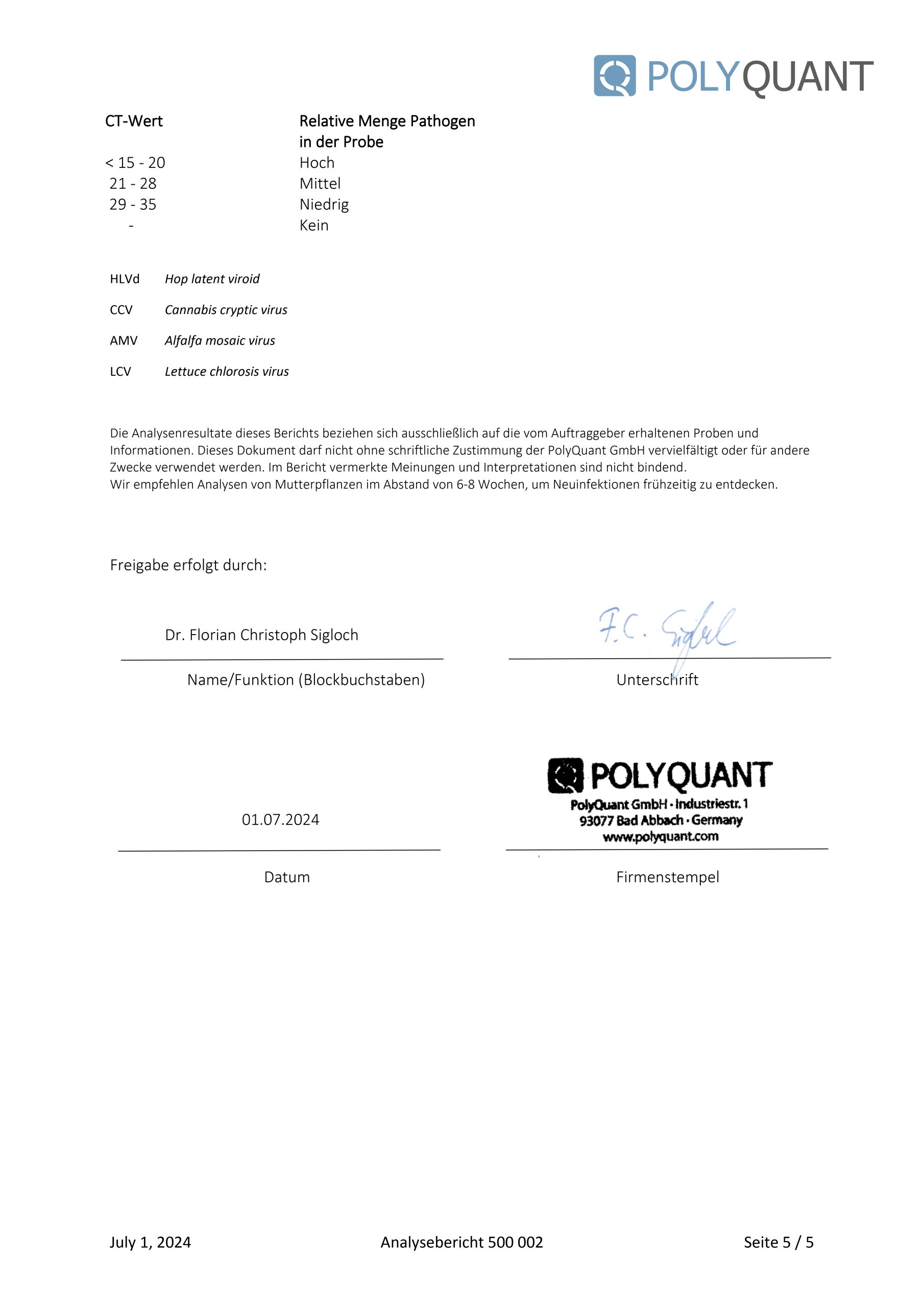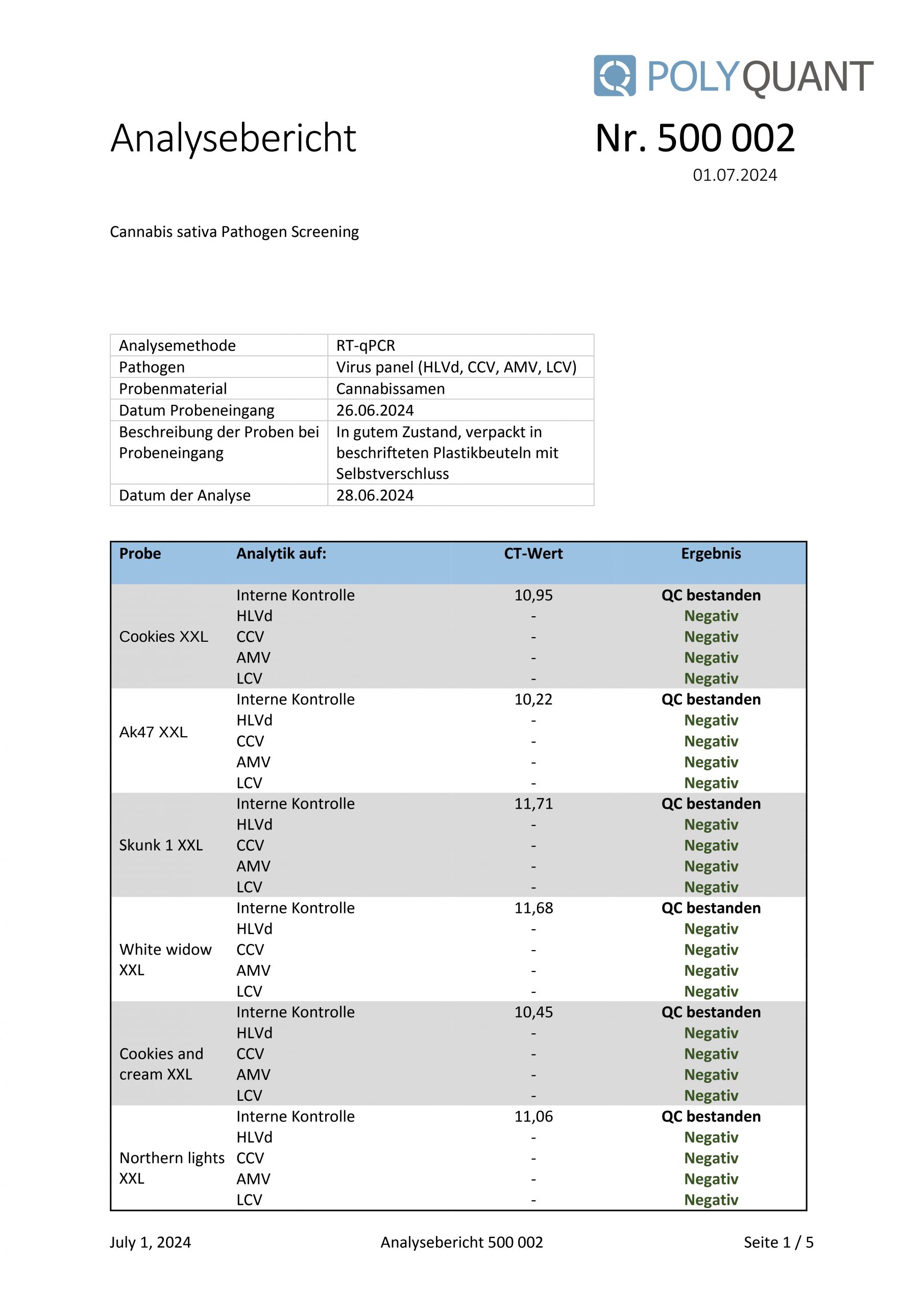 Onze zaden worden geteeld in een van de toonaangevende GMP-gecertificeerde faciliteiten in Europa. Elke partij van onze zaden wordt uitgebreid getest in Duitse laboratoria om ervoor te zorgen dat alleen de gezondste en meest kiemkrachtige zaden onze klanten bereiken.