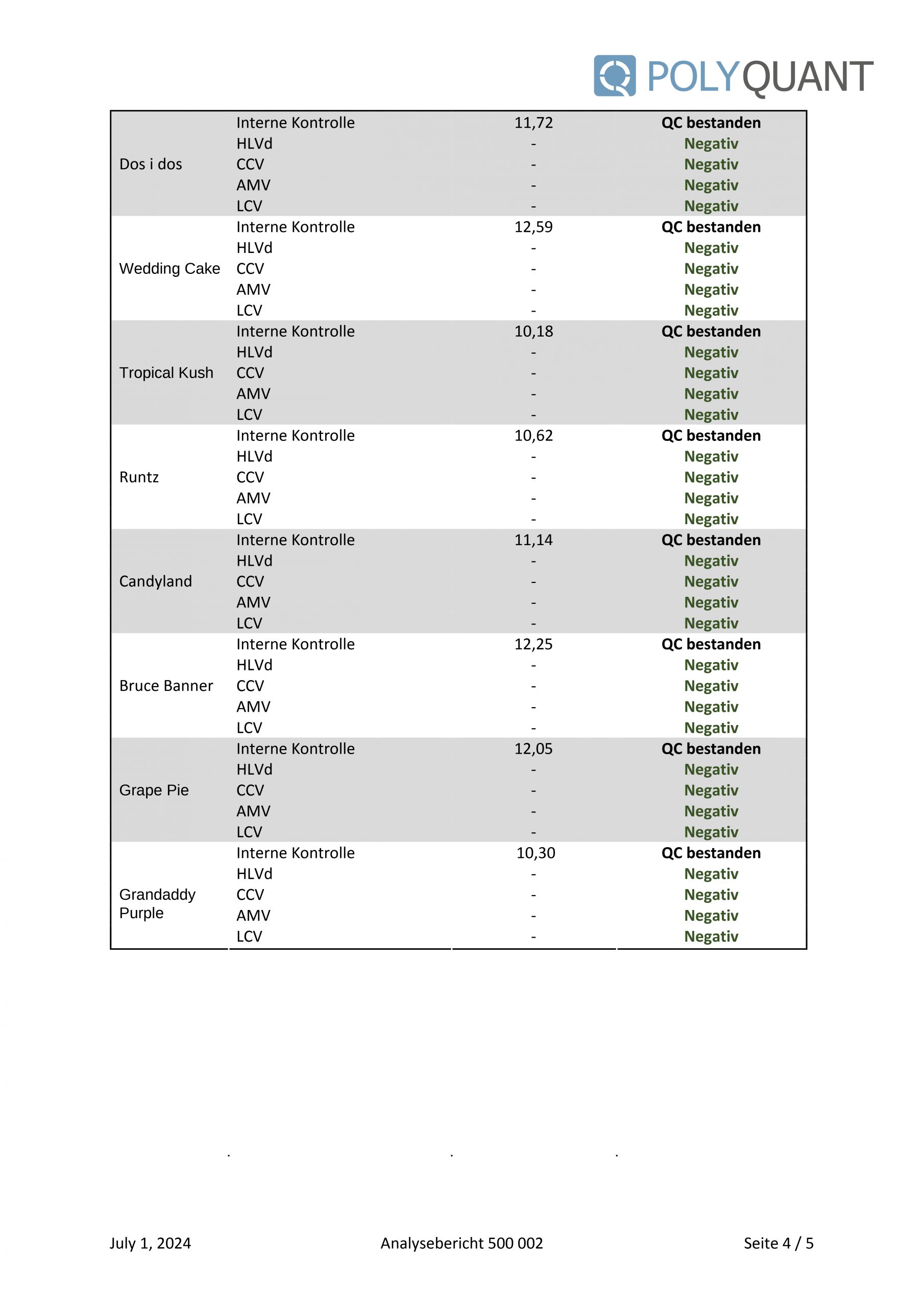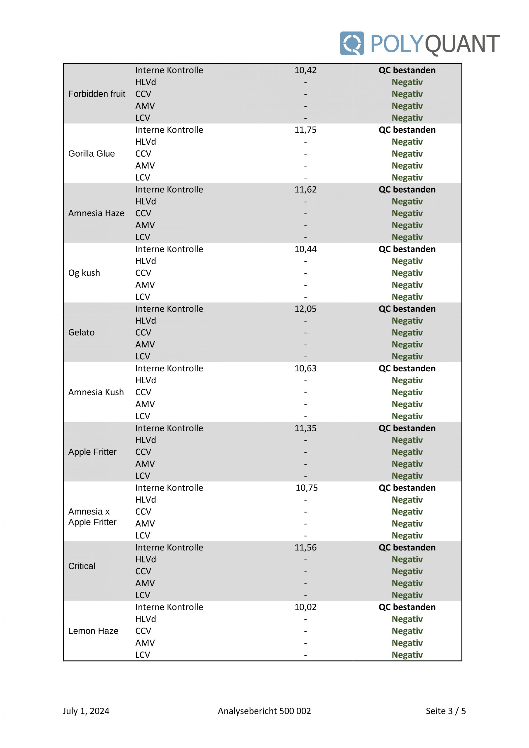 We testen specifiek op virussen zoals Alfalfa mozaïekvirus (AMV), Cannabis cryptic virus (CCV), Hop latent viroid (HLVd) en Lettuce chlorosis virus (LCV) met behulp van de RT-qPCR-test, een zeer gevoelige methode die specifieke virale RNA-sequenties in onze monsters detecteert en nauwkeurig kwantificeert.